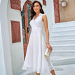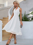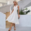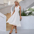 Trendy Women's V-Neck Sleeveless Chiffon Dress – Solid Color Design for Casual
